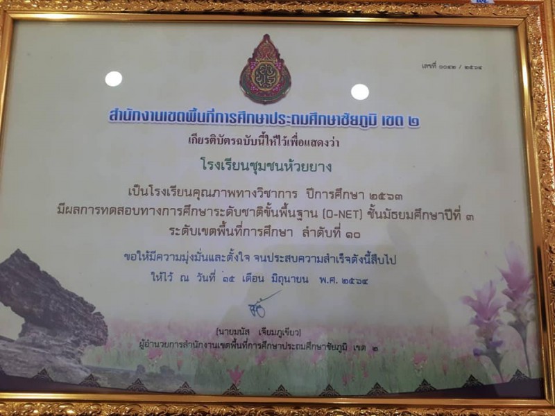 วันอังคาร ที่๑๕ มิถุนายน ๒๕๖๔ นำโดยจ่าสิบเอกสมพร เต็มแสง เป็นตัวแทนรับเกียรติบัตร โรงเรียนที่มีผลการทดสอบทางการศึกษาขั้นพื้นฐานO-NET ชั้นมัธยมศึกษาปีที่ ๓ ระดับเขตพื้นที่การศึกษา ลำดับที่ ๑๐ |