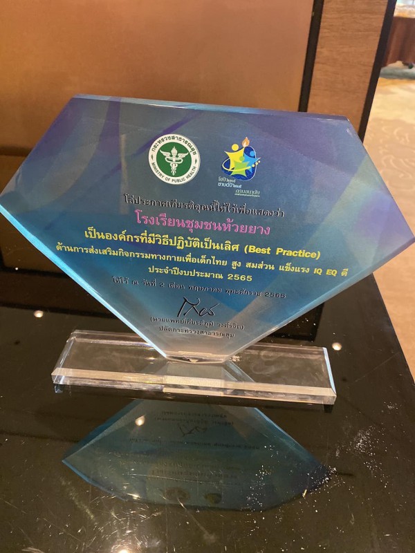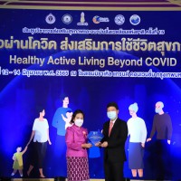 รับโล่รางวัลองค์กรที่มีวิธีปฏิบัติเป็นเลิศ (Best Practice) ด้านการส่งเสริมกิจกรรมทางกาย เพื่อเด็กไทยสูงสมส่วน แข็งแรง IQ EQ ดี